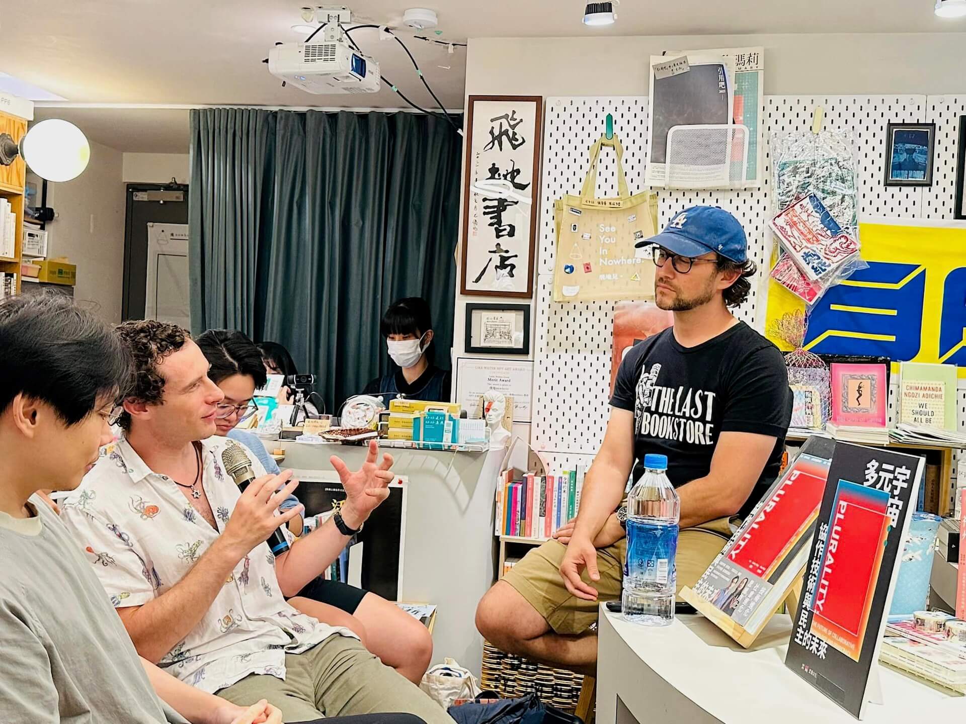 由於這是第二次討論這本書,所以氣氛格外輕鬆。衛谷倫在鵝黃色的燈光下一邊吃著鹹酥雞,一邊分享他眼中的台灣。此時他邀請一名朋友分享他最近做的專案。這位朋友穿著洛杉磯獨立書店「最後書店」(The Last Bookstore)的紀念T恤,戴著丹寧色鑲有LA字樣的棒球帽,舒舒服服地坐在書店角落的沙發。他說他叫做Joe,在洛杉磯開了一間人人都能參與的協作式製作公司,名為HITREC●RD。