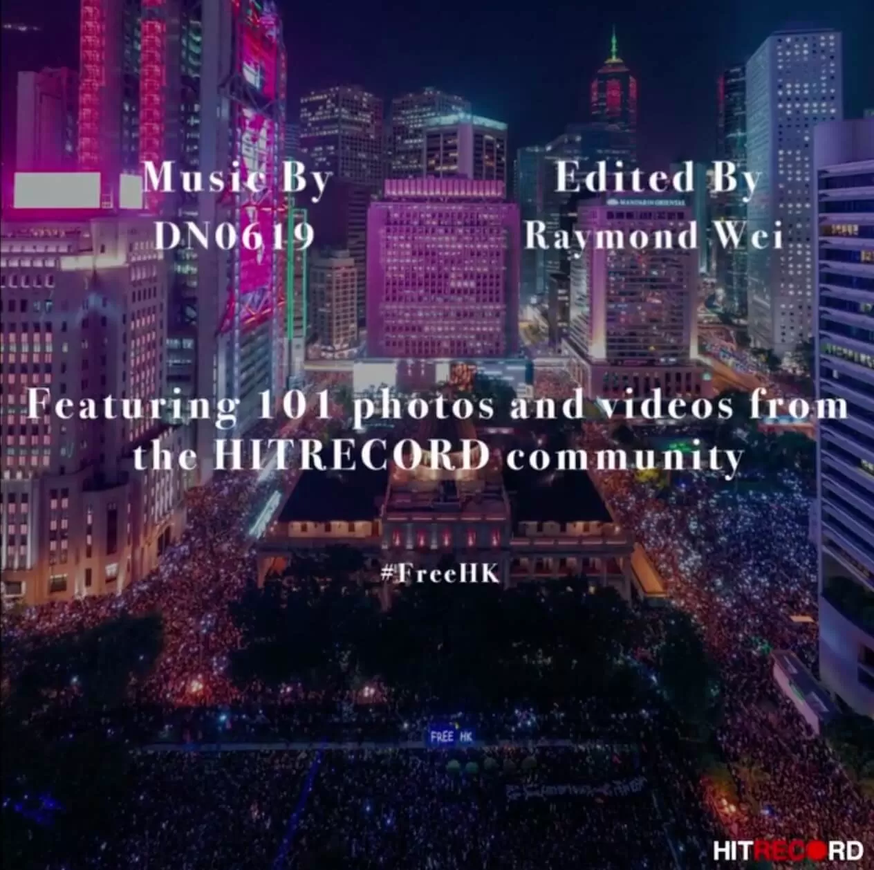 《香港不沈睡》的片尾畫面,可以看到完整的Credits。(圖片截自HITRECORD頁面)