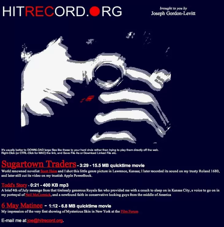 web1時期,第一個版本的HITRECORD頁面。(圖片截自HITRECORD官網)
