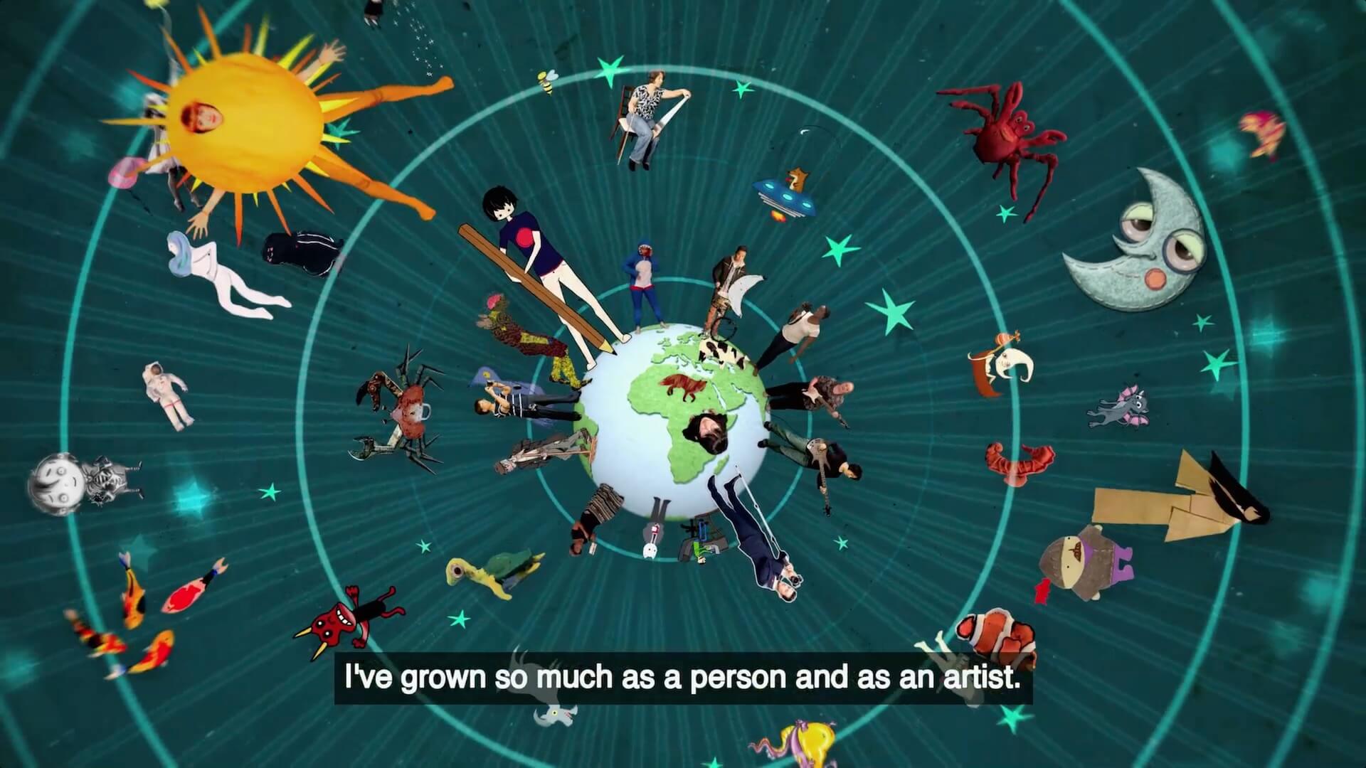 喬瑟夫認為,社群平台不應該是讓你有滑不完的影片,而要有讓你願意參與充滿趣味的創作專案,繼而從中取得滿足感。這便是一種協作式的科技,是反向於演算法的,而是讓使用者成為創作者,並成為一種「我為人人」(One for all)的集體創作。(圖片截自HITRECORD介紹影片)
